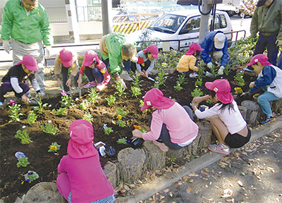 井土ヶ谷地区連合町内会の井土ヶ谷下町第二町内会(二本木正雄会長)は地区内にある市立井土ヶ谷保育園の園児との活動を進めている。昨年11月には、鶴巻橋公園の花壇の植え替えを園児20人と町内会有志で行った。