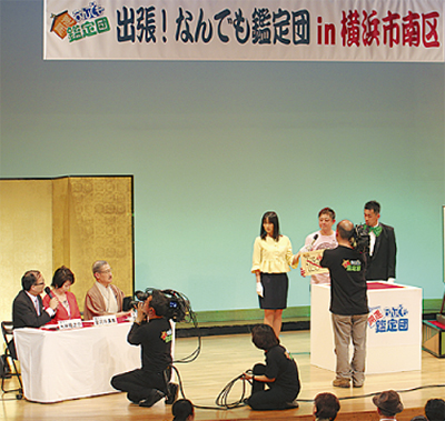 まつりに合わせ、南公会堂では、テレビ東京の人気番組「開運!なんでも鑑定団」の収録が行われた。事前に選ばれた区民らが焼き物や掛け軸などの”お宝”を持参し、中島誠之助さんらの鑑定士がその場で評価を下した。鑑定額が発表になるたびに、会場から驚きの声が出て、盛り上がりを見せた。放送は5月14日、午後8時54分からの予定。