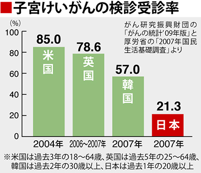 そもそも子宮けいがんは、検診によって早期発見が可能なことは実証済みです。下のグラフでも分かる通り、欧米諸国に比べて我が国の受診率が低すぎることを指摘し、速やかに安全で確実な検診方法を検討し、実施すべきであると強い態度で厚労大臣に迫りました。