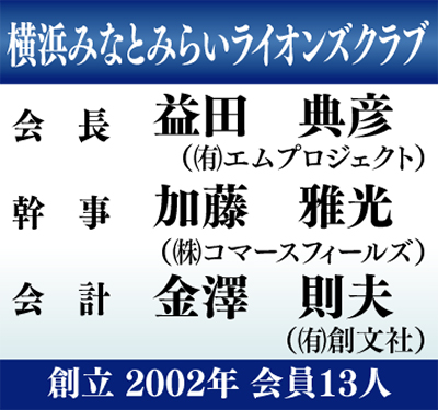 会員の減少などから、親クラブである横浜みなとライオンズクラブとの合併が決定。「みなと・馬車道」として来年から始動できるように、合同例会を月1回実施している。