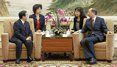 その後、中国独自の政治体制である上海市政治協商会議の蔡威(さい・い)副主席と会見しました。友好交流提携40周年を契機として、より一層両市の交流を深め、ともに発展していくために、相互の協力を確認した上で「そのためにも未来を担う学生同士の交流に力を入れたい」と提案し、共感を得ました。