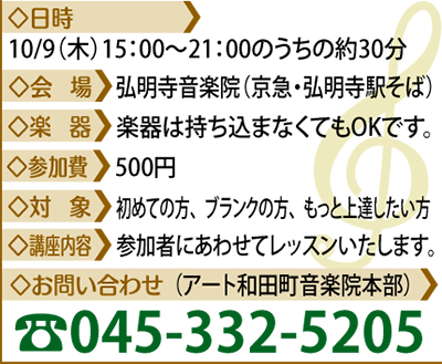 興味があってもなかなか親しむ機会の少ない楽器「バイオリン」を始めてみたい人に最適なレッスンが「弘明寺音楽院」(京急・弘明寺駅そば)で行われる。