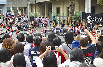 中庭には特設ステージが用意され、ダンス部の生徒が息の合った力強いヒップホップダンスを披露すると、来場者から大きな拍手が送られた。