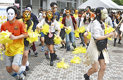 3年生有志で結成されたグループは、ヒット曲「女々しくて」のBGMに合わせて仮装ダンスを披露。会場はにぎわいを見せた。