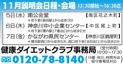 また、このダイエットは、一人一人に個別指導を含め健康的なダイエットへと導いてくれる。そのため「多くの方を指導出来ませんので、最後のダイエットと思われている方はぜひ参加してみては」とのこと。