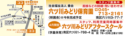 横浜市南区六ツ川3-77-7(本園)、南区六ツ川1-788-4(六ツ川みどりアフタースクール)