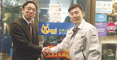 「防犯を提供する立場の企業として、地域の犯罪抑止に貢献できることはないか――」。そう考えていた同社の横山社長は1月、南中学校在学時の同級生だった佐藤邦雄さんと偶然再会。自販機の設置業者に勤める佐藤さんと近況を報告する中で、互いが力を合わせてできる「ビジネス」と「地域貢献活動」を一体化させることができないかという話題が上った。