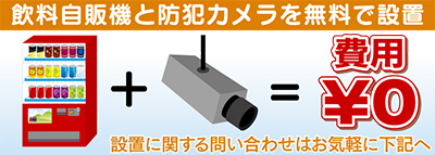 自動販売機の設置は個人・法人問わず可能。防犯カメラは通常、設置に20万円〜30万円が必要とされているが、その費用が一切不要になる。また、大手専門企業が担当する自販機の設置費用に関しても無料。依頼者は自販機の維持費用だけを負担すればいい。設置は立地条件(幅116cm×奥行54cmの空きスペースが必要)などの審査に通れば1週間前後でできる。