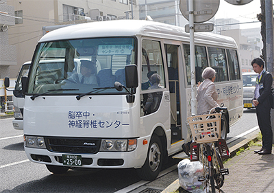 同センターは、脳血管疾患や、高齢者に多い脊椎脊髄疾患などに対応する。来院者数は1日約400人で、南区からの来院も多い。