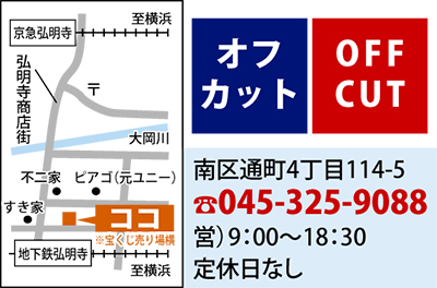 地下鉄・弘明寺駅から徒歩0分。弘明寺商店街入り口付近に今春、理容室「OFFCUT/オフカット」がオープンした。