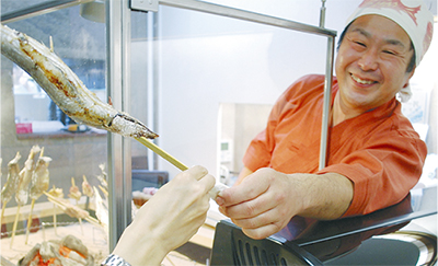 オープンからわずか半年。この居酒屋激戦区で、既に常連多数の人気店である。一見敷居が高そうな店構えだが値段はリーズナブル。カウンター越しの囲炉裏では、鮎やイサキといった旬魚や秋田さくらどりなどこだわりの食材が備長炭でじっくりと焼かれている。串のまま渡された魚にかぶりつくと、シンプルな塩焼きが素材の良さを引き立て、皮までがご馳走だと分かる。