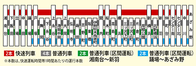 快速運行に伴い、湘南台―新羽、踊場―あざみ野の区間運転を行う。