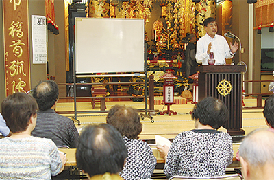 浄土宗大光院=三春台=(宮林雄彦住職)で8月8日に「夏期暁天(ぎょうてん)講座」が開かれ、約30人が参加した。
