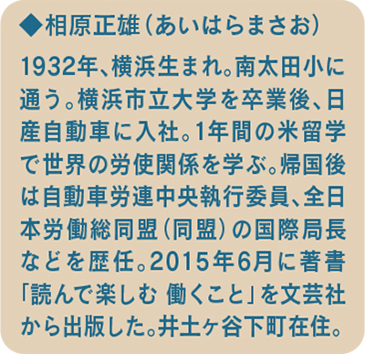 今号から日本の労使関係構築に長年力を注いできた井土ヶ谷下町在住の相原正雄さん(83)による新コラム「日本人と労働」がスタートします。自身の体験で感じたこと、伝えたいことなどを月に1回掲載する予定です。