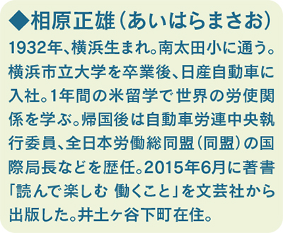国内の労使関係構築に力を注いだ井土ヶ谷下町在住の相原正雄さん(83)による月に1度のコラムです。自身の体験で感じたこと、伝えたいことを掲載します。