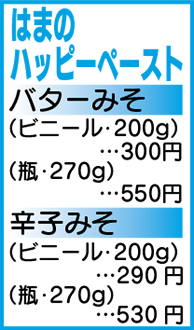 バターの風味がやさしく、食パンやサンドイッチ、野菜スティックなどに付けると美味しい「バターみそ」とご飯のおかずに最適なピリ辛の「辛子みそ」を用意。現在、弘明寺商店街内の中華料理「広洲亭」で購入できるほか、10月24日(土)、25日(日)に南センターで開かれる南区文化祭で試食・販売ブースが設けられる。