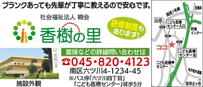 六ツ川4丁目の特別養護老人ホーム「香樹の里」で介護スタッフを募集している。初任者研修以上の資格を持つ正職員のほか、週2日・1日4時間〜勤務できるパートも大歓迎。経験豊富な先輩が丁寧に指導するので実務経験は問わない。
