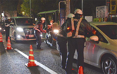 南警察署が12月4日、同署前の道路で飲酒運転の一斉取り締まりを行った。