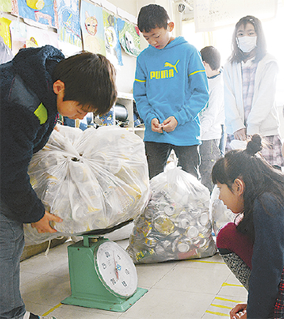 ある女子児童は「施設には杖をついて歩くのが大変な人もいた。力になれたら」と話す。担任の斎藤光教諭は「回収に協力してくださる地域の方もいる。児童には、取り組みを人に伝えるために何をしたら良いのかを学んでほしい」と語る。