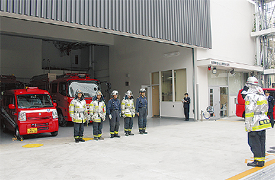 22日は消防車などの出動訓練が行われた。牧島署長は「区役所、土木事務所とともに防災の要として、区民のために活動していきたい」とあいさつした。