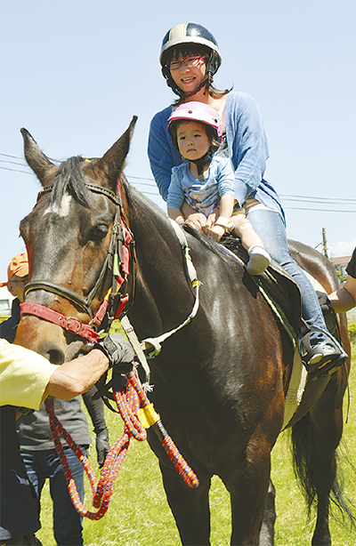 同院に通・入院する子どもと保護者らが参加。2歳の娘と一緒に馬に乗った母親は、「昨年は子どもが怖がって泣いてしまったが今回は笑って喜んでいた」と嬉しそうに語った。同院の剣持栄事務局長は、「親子の明るい表情が見られた」と満足そうだった。