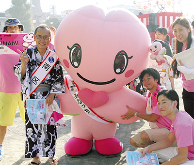上位進出を目指し、みなっちは7月30日、31日の南まつりでも会場の蒔田公園内を練り歩いて「桜旋風を巻き起こそう」と書かれたチラシを配ってPRした。