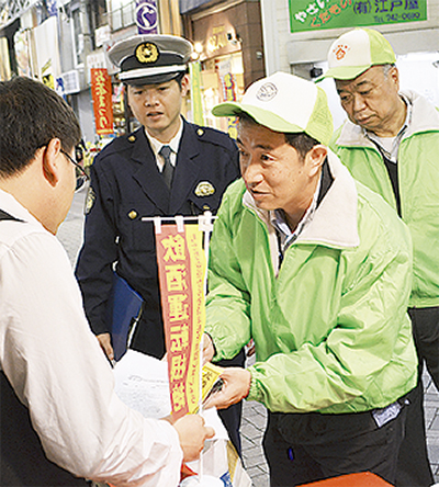 南区交通安全対策協議会や南交通安全協会などが主催する年末の交通事故防止を区民に呼びかけるキャンペーンが12月12日、弘明寺商店街で行われた。