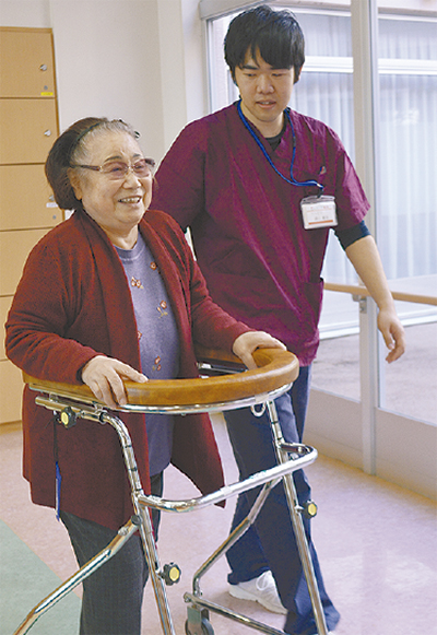 六ツ川の「レストア横浜」は入所者のリハビリなどを支援して在宅生活復帰を目指す南区内唯一の介護老人保健施設(老健)。自宅での生活が困難な人へのリハビリを目的とした入所提案なども行っている。