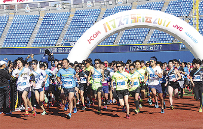 DeNAと横浜スタジアムは1月22日、横浜スタジアムで市民参加の「ハマスタ駅伝」を初めて開催した。約5千人が参加。6Km、15Kmなどの種目を用意。参加者は普段はプロ野球選手が活躍するグラウンドを走り、楽しんでいた。