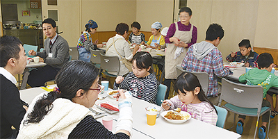 堀ノ内睦町地区の住民有志らのグループ「わいわい食堂」が1月21日、睦地域ケアプラザで「こども食堂」を初めて開いた。小学生や保護者などが訪れ、食事やゲームを楽しんだ。同グループは親子らが集まる地域のコミュニティとして今後も月に一度、定期開催し、子どもの居場所づくりを進めていく。