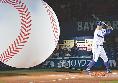 セレモニーの最後には、昨季のセントラルリーグ本塁打、打点の2冠に輝いたチームの主将、筒香嘉智選手がバッターボックスに。センター方向から迫る直径2・5mの巨大なボールを打ち抜き、約3万人の観客を盛り上げた。