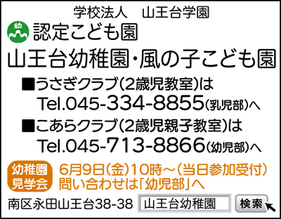 南区唯一の認定こども園「山王台幼稚園」が2歳児対象の教室「うさぎクラブ」と、2歳児と保護者が対象の親子教室「こあらクラブ」への入会を受け付けている。