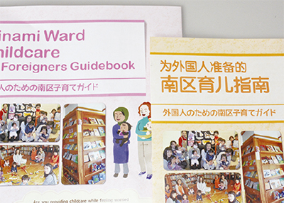 こうした南区の現状を踏まえ、言葉や文化の違いで不安を感じながら子育てをしている外国人親子らを支援しようと、英語版と中国語版の「子育てガイド」を作成した。区によると、親子で楽しめる場所や子育て相談などができる施設などを外国語で紹介したガイドは市内18区で初。