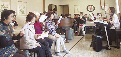 「花もよう」で自宅を開放する唐沢在住の内田恵美子さんは、障害者らの支援を行う社会福祉法人「恵友会」の元理事長。「横浜いのちの電話」の創設者でもあり、多くの福祉活動に携わってきた。昨秋、中村地域ケアプラザから自宅開放の相談を受け「地域で何か力になれたら」と快諾。サロンは地域の町内会館などで行われることが多く、個人宅での開催は珍しい。