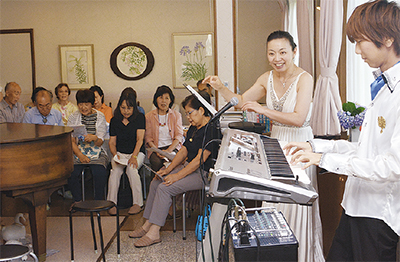 当日は周辺住民など約60人が参加。オープニングセレモニーでは、和やかなシンセサイザーの音色に合わせて「故郷」などを合唱。優しい歌声でサロンの船出を祝った。
