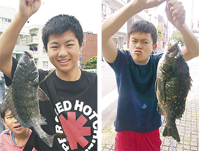 「大岡川で中学生がクロダイを釣った」――。川に架かる山王橋付近で6月上旬、共進中学校3年生の柴田政之君と稲垣空之輔君の2人が、相次いでクロダイを釣り上げた。
