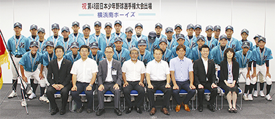 中学生の硬式野球チーム「横浜南ボーイズ」(大谷剛正会長)が8月2日から大阪府で行われる「日本少年野球選手権大会」に出場するのを前に選手らが7月18日、南区役所を訪れた。