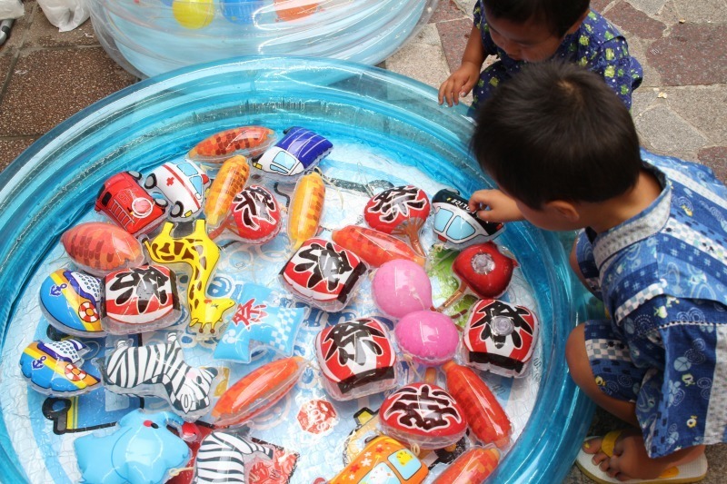 横浜橋通商店街の「ミニ縁日」が8月4日に行われました。かき氷、フランクフルト、ヨーヨー釣りなどのおなじみのものが並びました。全10種を食べたり、遊べるチケットは500円、ゆかたや甚平着用だと200円と格安になります。5日も午後3時から7時まで開かれます。