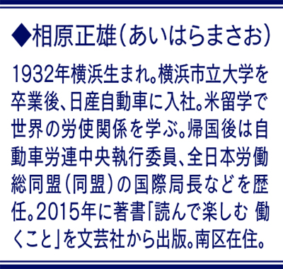 国内の労使関係構築に力を注いだ南区在住の相原正雄さん(85)が横浜での思い出を語ります。