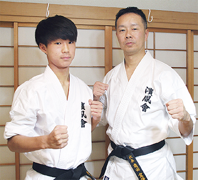 中里在住の会社員・角田宜優(かくたよしまさ)さん(46)=人物風土記で紹介=と長男で中学3年生の拳悠(けんゆう)君(15)が9月24日に東京で行われた「全日本空手道選手権大会」の防具付部門でそれぞれ、年齢別種目の優勝を果たした。二人三脚で空手に取り組み、これまで達成できなかった「親子同時優勝」という快挙を遂げた。