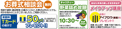 2大イベントのほか、「コンビニエンスストアなどで使える「Tカード」を受付に提示すると、全員にTポイント50ptをプレゼント。