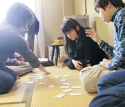 堀ノ内睦町地区の子どもらが参加する「かるた・もちつき大会」が1月7日、睦西町内会館で行われ、約250人が参加した。