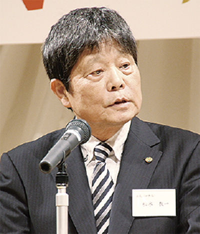 造園業者のほか林文子市長や市幹部らが出席。田澤重幸会長=田澤園(六ツ川)社長=は昨年の全国都市緑化フェアが成功だったとした上で「2026年の国際園芸博覧会誘致へ向けて取り組みを進めたい。造園力をブラッシュアップする」と意気込んだ。(12日、ホテルガーデン横浜)