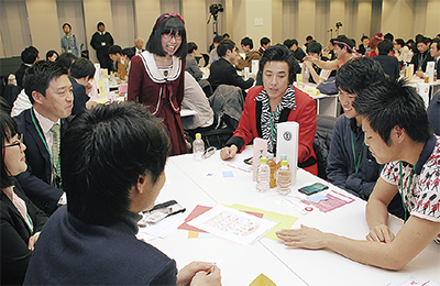 この日はお笑い芸人100人と国会議員や地方議員など約40人の政治家、約60人の学生が参加。5人1組となり、あらかじめ設定された年齢や職業の立場になって、「大学まで学費を無料にする」などについて賛否を議論した。お笑いコンビ「モグライダー」の芝大輔さんは「政治家の意見を直接聞ける機会は珍しい」と語った。