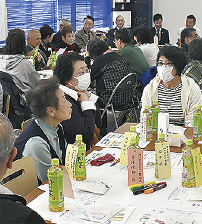 同地区社会福祉協議会による初の試みで、地元企業の社長や自治会長ら約50人が参加。前半は同センターを管理・運営する太陽住建やパチンコ店「ドキわくランド」の代表者が地域貢献として行う清掃活動などを説明。後半は参加者がグループで地域の問題点や困りごとを話し合った。