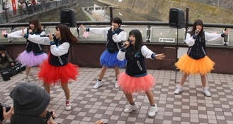 本紙でもおなじみの馬車道発の横浜アイドル「ポニカロード」が4月2日午後1時50分からFMヨコハマで放送される「ファンケルヨコハマなでしこ」に出演します。同番組は横浜で活躍する女性にスポットを当て、インタビューを行うものです。これまでパーソナリティを務めていた桐島瑞樹さんに代わり、今週の放送から半田あいさんが担当します。(写真は2月に弘明寺商店街で行ったライブ)
