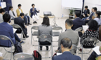 地域課題の解決を目指し、同センターの管理・運営を行う住宅リフォーム会社「太陽住建」などが取り組む「リビングラボ」の企画。空き家が社会問題化する中、実践者の話を聞こうと開かれた。
