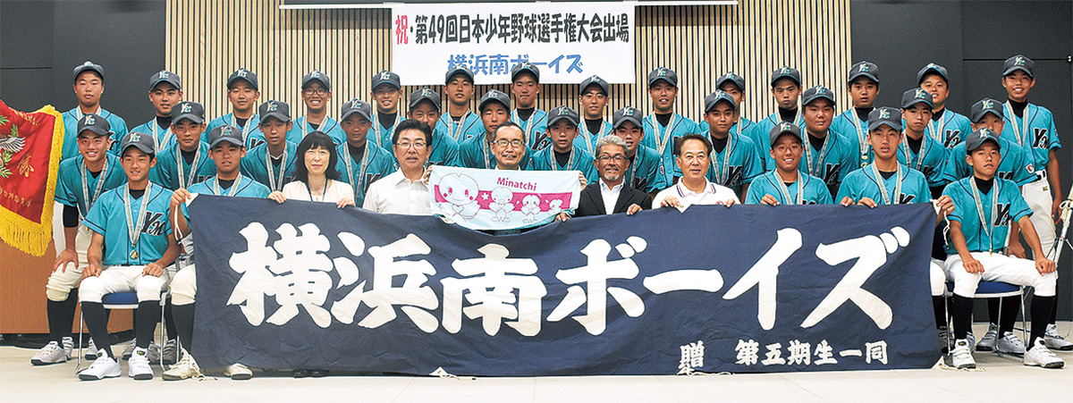中学生の硬式野球チーム「横浜南ボーイズ」(大谷剛正会長)が8月2日から大阪府で行われる「日本少年野球選手権大会」に出場するのを前に選手らが7月17日、南区の大木節裕区長を表敬訪問した。