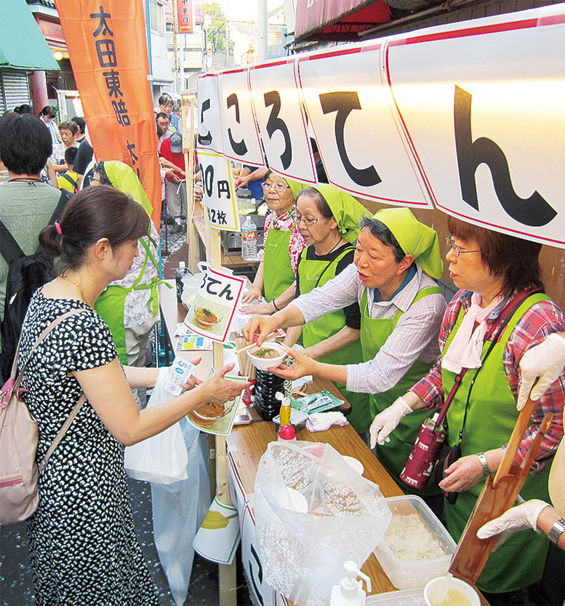 焼き鳥やカレーが販売された細い路地には大勢の人が集まり、すれ違うのがやっとだった。伊勢佐木町の「銚子屋」名物のところてんが人気で、早々に売り切れていた。