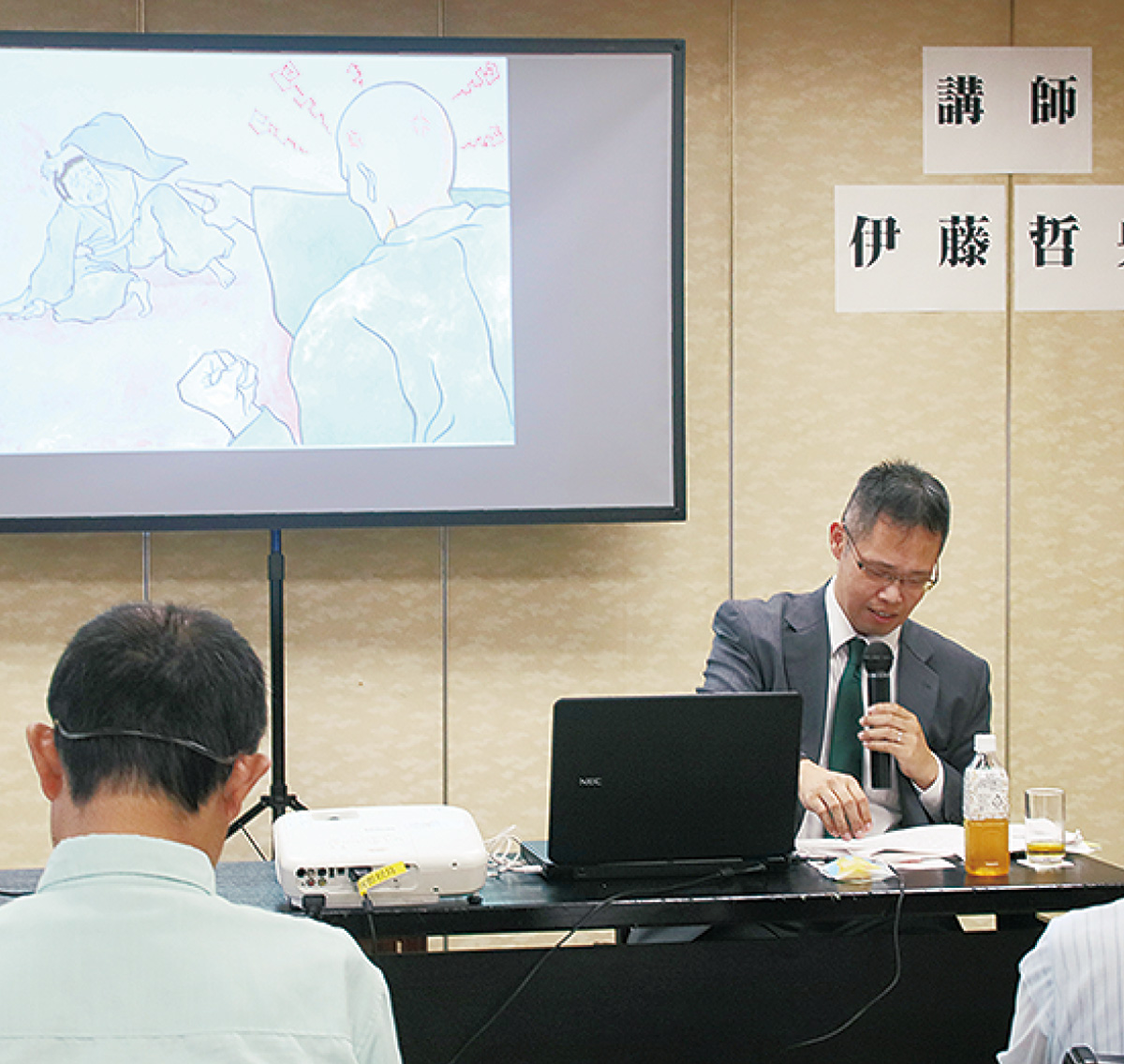 伊藤さんは現在の西尾市を拠点とした吉良上野介の祖先(中世吉良氏)を研究。紙面上だけではなく、紙芝居を制作し、中世三河吉良氏340年の歴史を紹介している。この日も紙芝居を披露。足利義氏が西尾城を創建し、台頭する鎌倉前期から戦国時代までの吉良氏の動きを説明した。